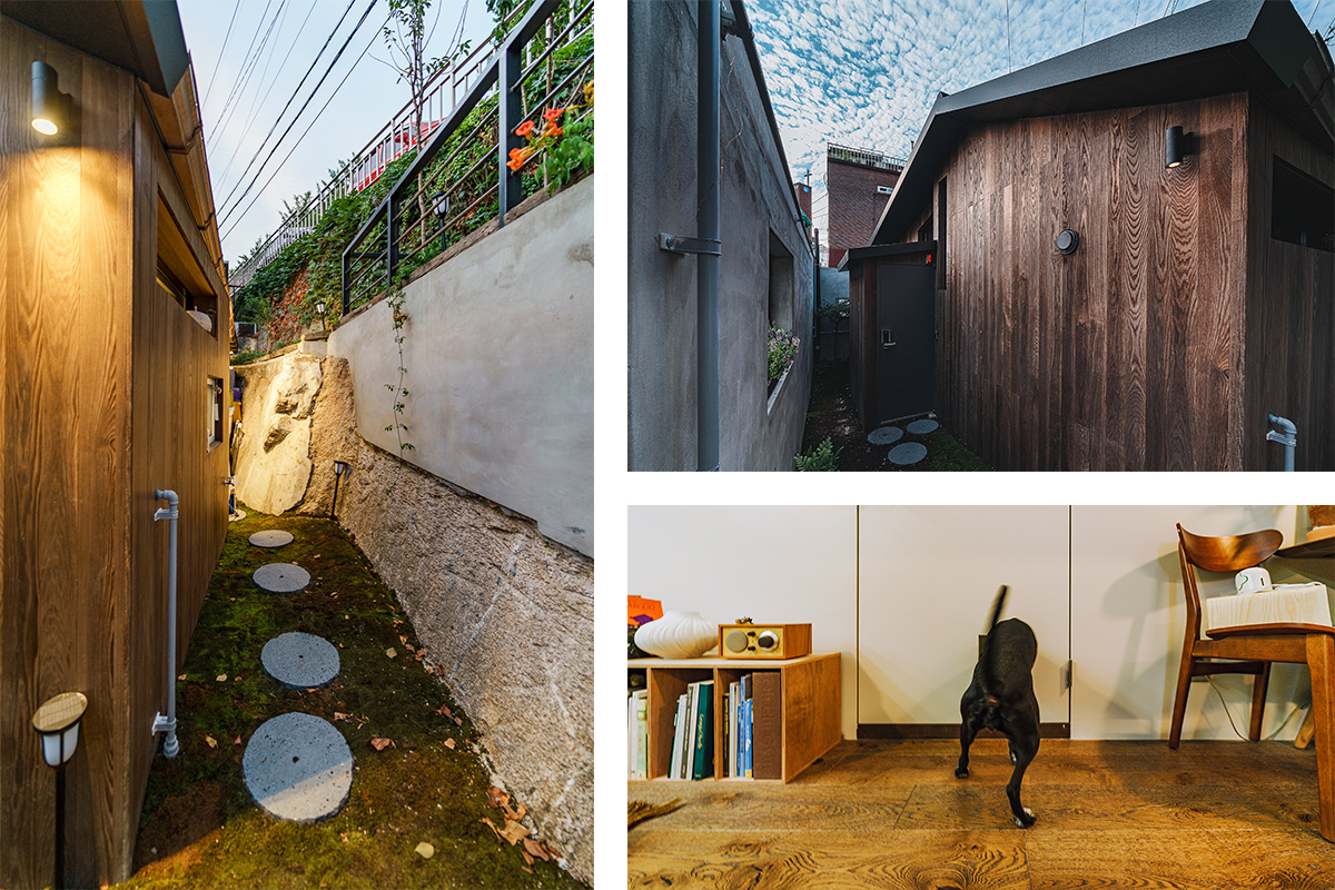 가을이 넘어 건축주는 건축사무소 식구들을 초대해주셨다. 고양이 2마리는 이미 새집에 적응을 잘해서 너무 다행이라고 하셨고, 새로운 강아지 한마리가 식구가 되어 마당의 한적한 햇살을 누릴 수 있게 되었다. 집을 고치는 내내 인왕산 성벽길을 오르며 느낀 동네의 분위기에 스며들어 마치 오랜기간 정든 곳이란 생각마저 들게 했다. 아직 성벽길 옆에서 부는 바람의 시원함이 느껴지는 듯하다.